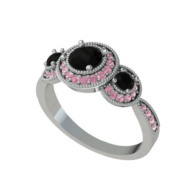 Siyah zirkon ve pembe kuvars 8 ayar beyaz altın yüzük