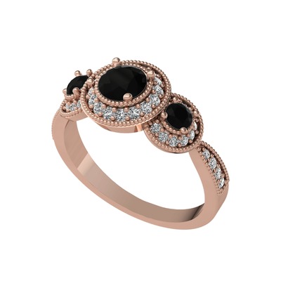 Siyah zirkon ve pırlanta 18 ayar rose altın yüzük (0.462 karat)