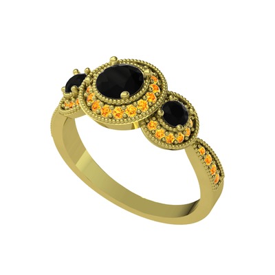 Siyah zirkon ve sitrin 925 ayar altın kaplama gümüş yüzük