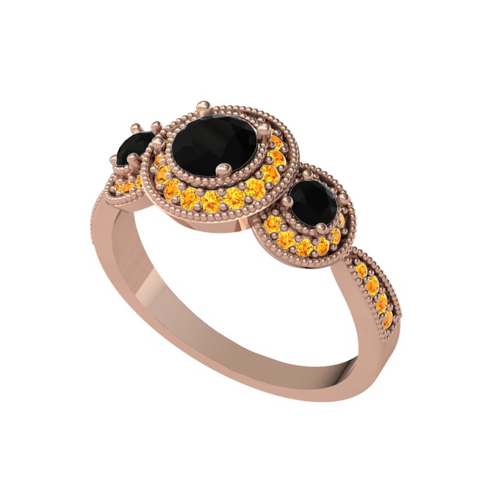Siyah zirkon ve sitrin 925 ayar rose altın kaplama gümüş yüzük