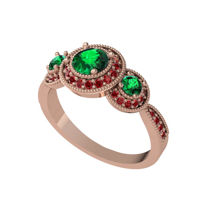 Yeşil kuvars ve garnet 8 ayar rose altın yüzük