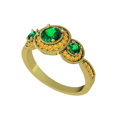 Yeşil kuvars ve sitrin 8 ayar altın yüzük