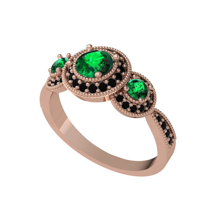 Yeşil kuvars ve siyah zirkon 18 ayar rose altın yüzük
