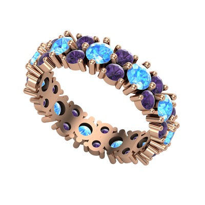 Akuamarin ve ametist 18 ayar rose altın yüzük