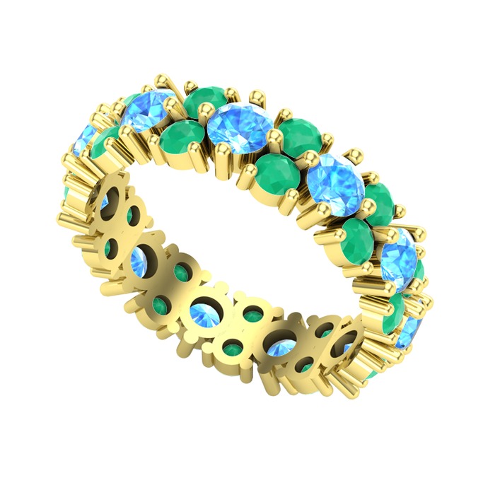 Akuamarin ve kök zümrüt 14 ayar altın yüzük