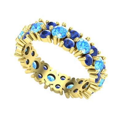 Akuamarin ve lab safir 925 ayar altın kaplama gümüş yüzük