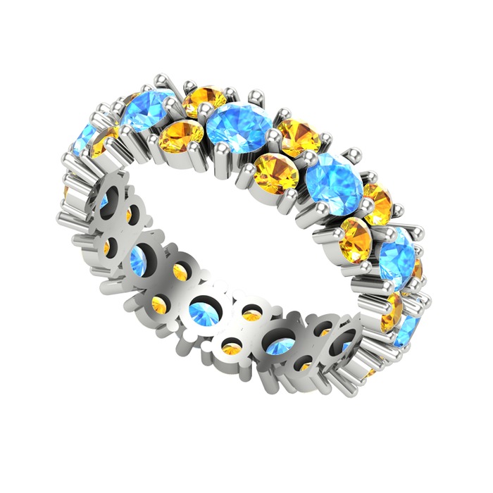 Akuamarin ve sitrin 8 ayar beyaz altın yüzük