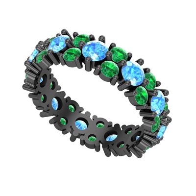 Akuamarin ve yeşil kuvars 925 ayar siyah rodyum kaplama gümüş yüzük