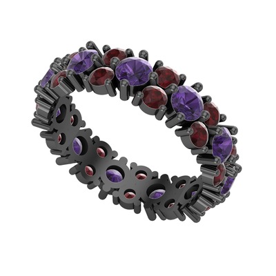 Ametist ve kök yakut 925 ayar siyah rodyum kaplama gümüş yüzük