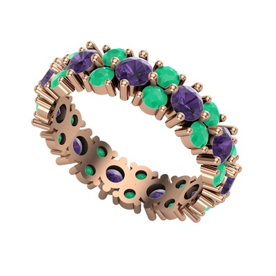 Ametist ve kök zümrüt 925 ayar rose altın kaplama gümüş yüzük