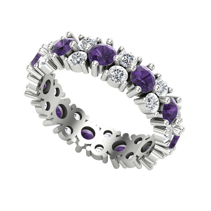 Ametist ve pırlanta 8 ayar beyaz altın yüzük (1.32 karat)