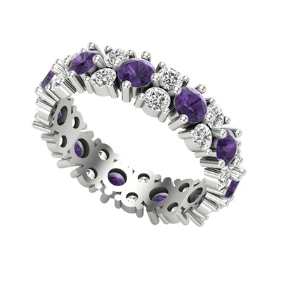 Ametist ve swarovski 8 ayar beyaz altın yüzük
