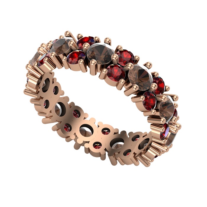 Dumanlı kuvars ve garnet 8 ayar rose altın yüzük
