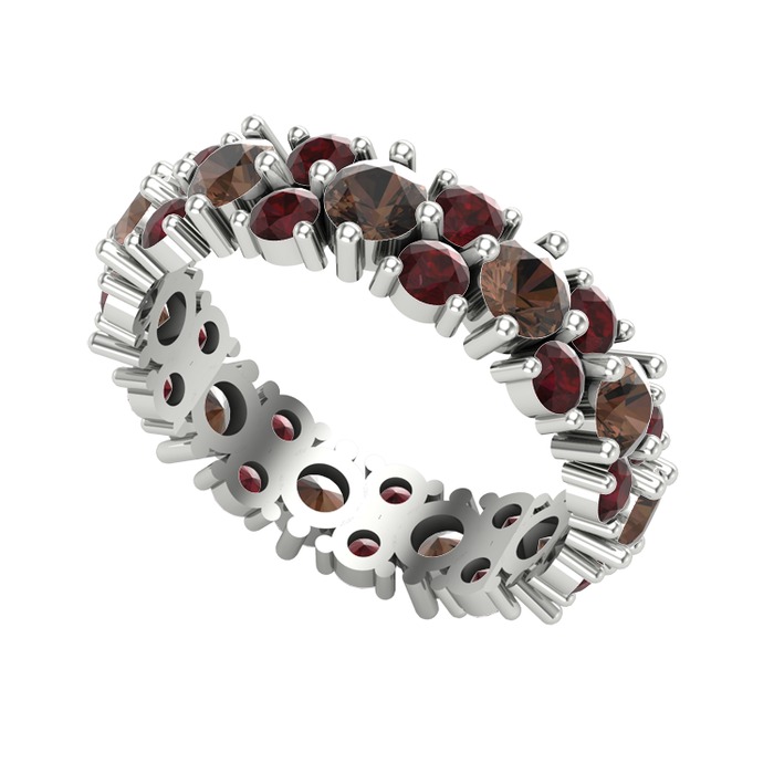 Dumanlı kuvars ve kök yakut 18 ayar beyaz altın yüzük