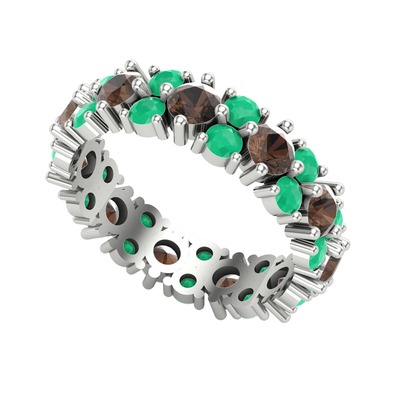 Dumanlı kuvars ve kök zümrüt 18 ayar beyaz altın yüzük