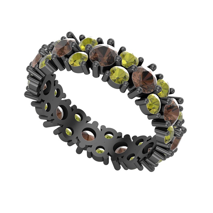 Dumanlı kuvars ve peridot 925 ayar siyah rodyum kaplama gümüş yüzük