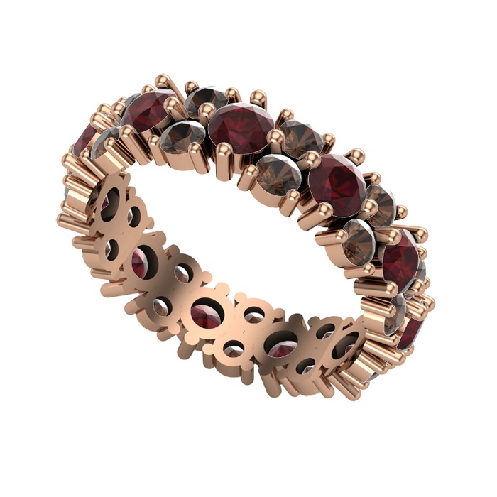 Kök yakut ve dumanlı kuvars 8 ayar rose altın yüzük