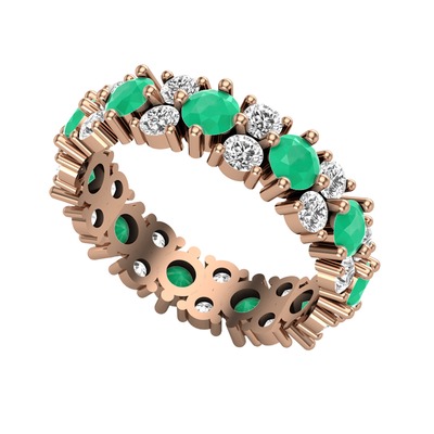 Kök zümrüt ve beyaz zirkon 14 ayar rose altın yüzük