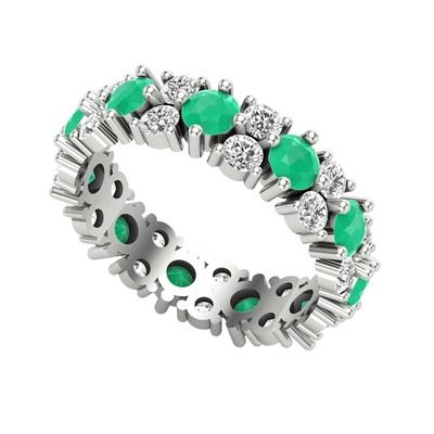 Kök zümrüt ve beyaz zirkon 18 ayar beyaz altın yüzük