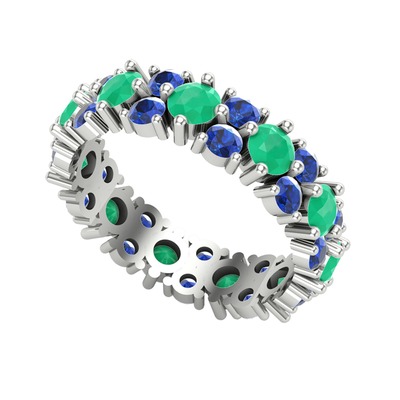 Kök zümrüt ve lab safir 14 ayar beyaz altın yüzük