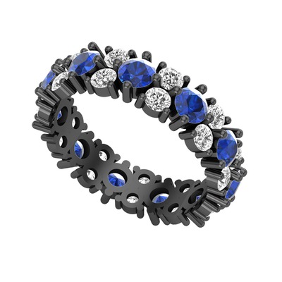 Lab safir ve beyaz zirkon 925 ayar siyah rodyum kaplama gümüş yüzük