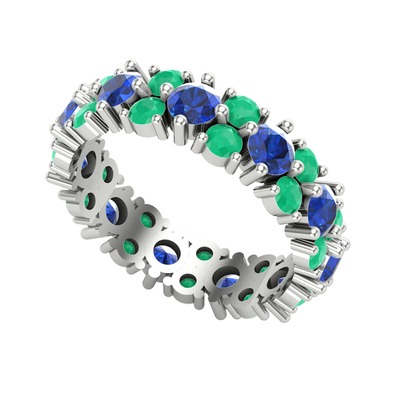 Lab safir ve kök zümrüt 925 ayar gümüş yüzük