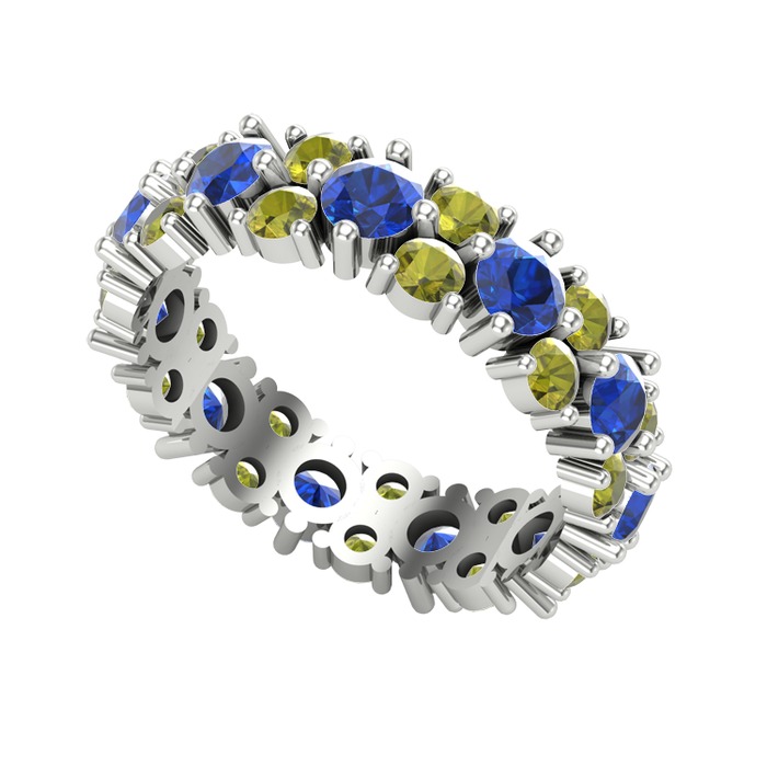 Lab safir ve peridot 18 ayar beyaz altın yüzük