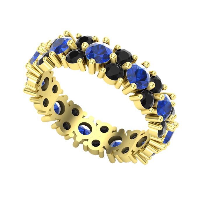 Lab safir ve siyah zirkon 925 ayar altın kaplama gümüş yüzük