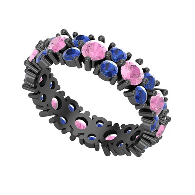 Pembe kuvars ve lab safir 925 ayar siyah rodyum kaplama gümüş yüzük