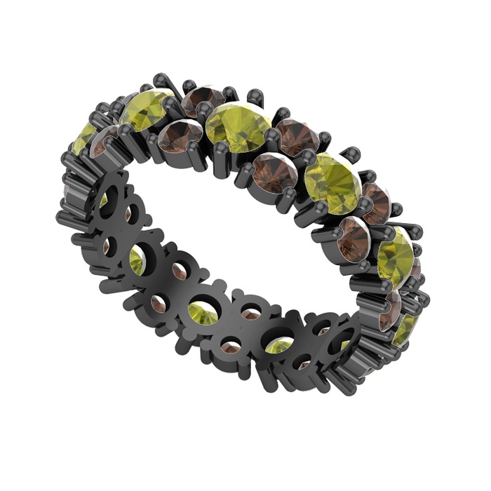 Peridot ve dumanlı kuvars 925 ayar siyah rodyum kaplama gümüş yüzük