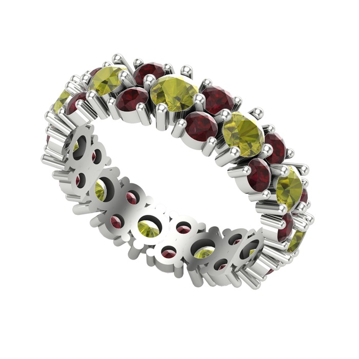 Peridot ve kök yakut 18 ayar beyaz altın yüzük