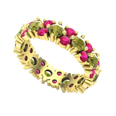 Peridot ve rodolit garnet 18 ayar altın yüzük