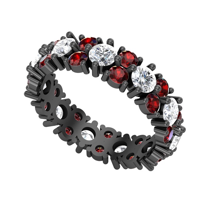 Pırlanta ve garnet 925 ayar siyah rodyum kaplama gümüş yüzük (1.76 karat)