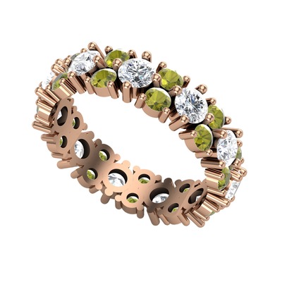 Pırlanta ve peridot 18 ayar rose altın yüzük (1.76 karat)