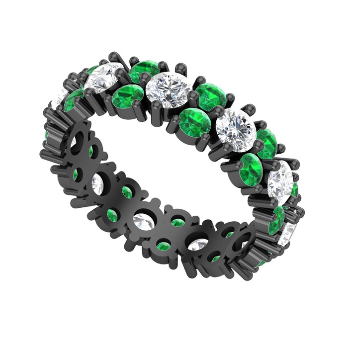 Pırlanta ve yeşil kuvars 925 ayar siyah rodyum kaplama gümüş yüzük (1.76 karat)