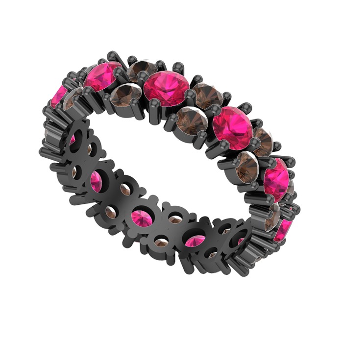 Rodolit garnet ve dumanlı kuvars 925 ayar siyah rodyum kaplama gümüş yüzük