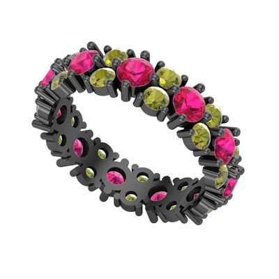 Rodolit garnet ve peridot 925 ayar siyah rodyum kaplama gümüş yüzük