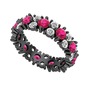 Rodolit garnet ve swarovski 925 ayar siyah rodyum kaplama gümüş yüzük