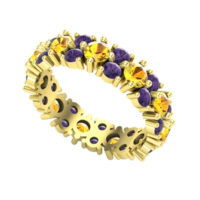 Sitrin ve ametist 925 ayar altın kaplama gümüş yüzük