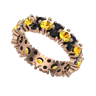 Sitrin ve siyah zirkon 18 ayar rose altın yüzük