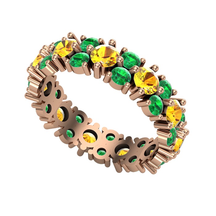 Sitrin ve yeşil kuvars 8 ayar rose altın yüzük
