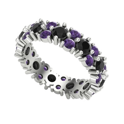 Siyah zirkon ve ametist 14 ayar beyaz altın yüzük