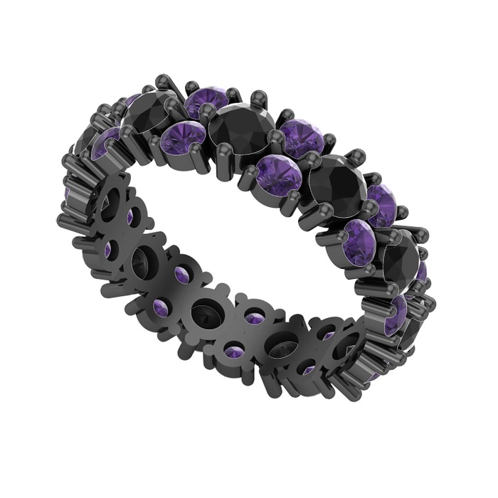 Siyah zirkon ve ametist 925 ayar siyah rodyum kaplama gümüş yüzük