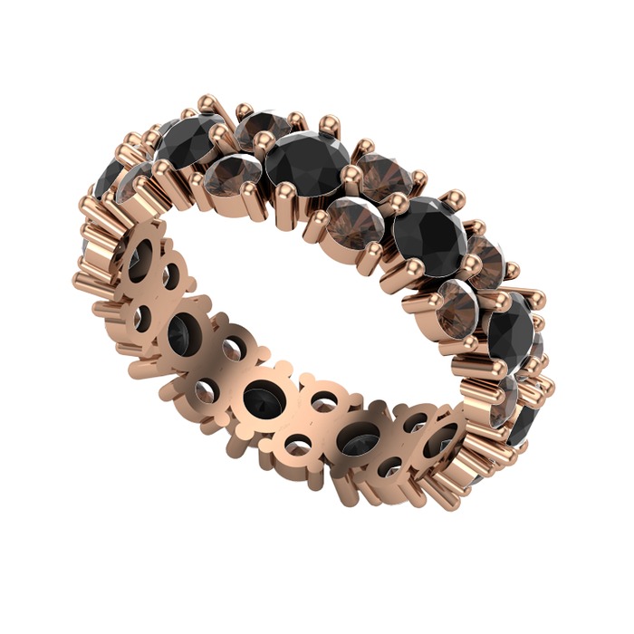 Siyah zirkon ve dumanlı kuvars 14 ayar rose altın yüzük
