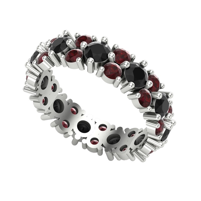 Siyah zirkon ve kök yakut 18 ayar beyaz altın yüzük