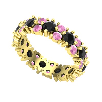 Siyah zirkon ve pembe kuvars 925 ayar altın kaplama gümüş yüzük