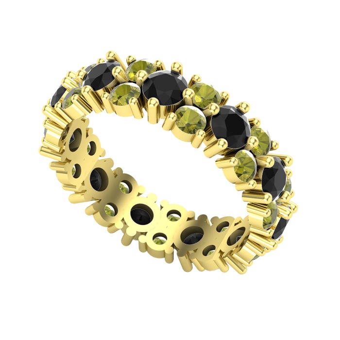 Siyah zirkon ve peridot 14 ayar altın yüzük