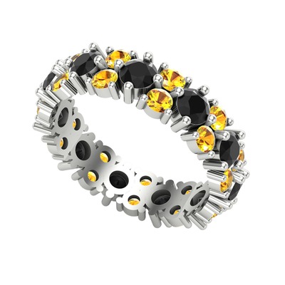 Siyah zirkon ve sitrin 14 ayar beyaz altın yüzük
