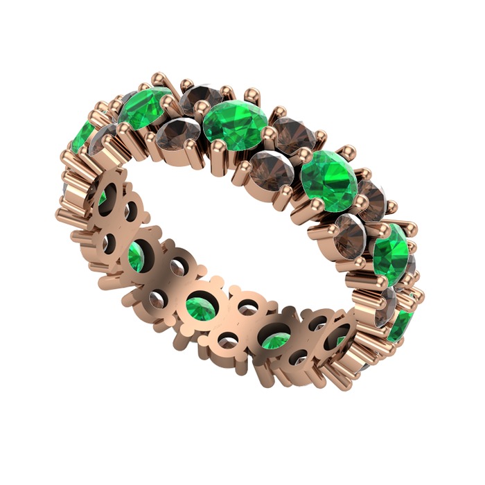Yeşil kuvars ve dumanlı kuvars 18 ayar rose altın yüzük