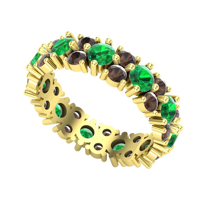Yeşil kuvars ve dumanlı kuvars 8 ayar altın yüzük